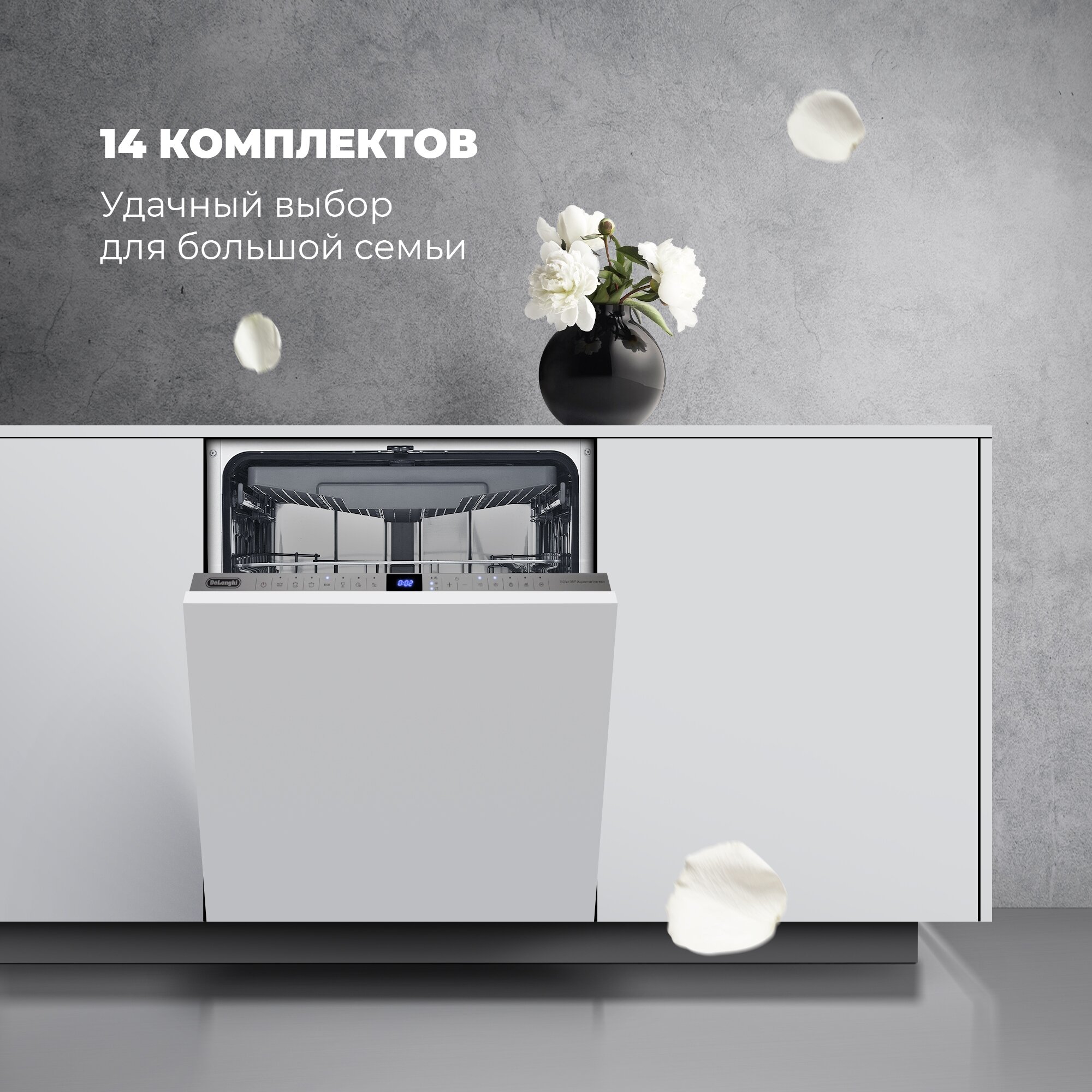 Встраиваемая посудомоечная машина DeLonghi DDW 08F Aquamarine eco, 60 см, инверторный мотор, 14 комплектов, сенсорное управление