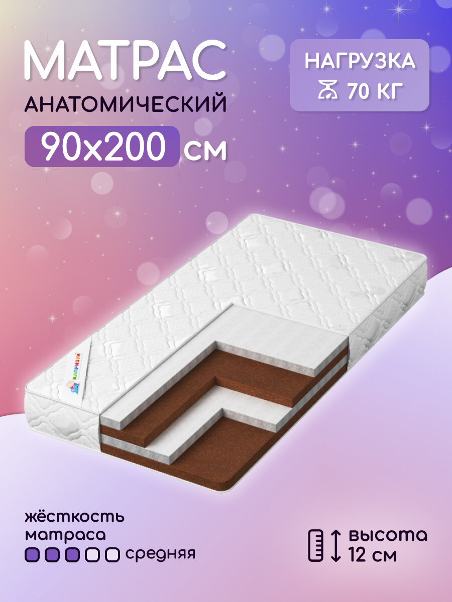 Матрас 200 на 90см на 12см - беспружинный - средняя жесткость - Капризун