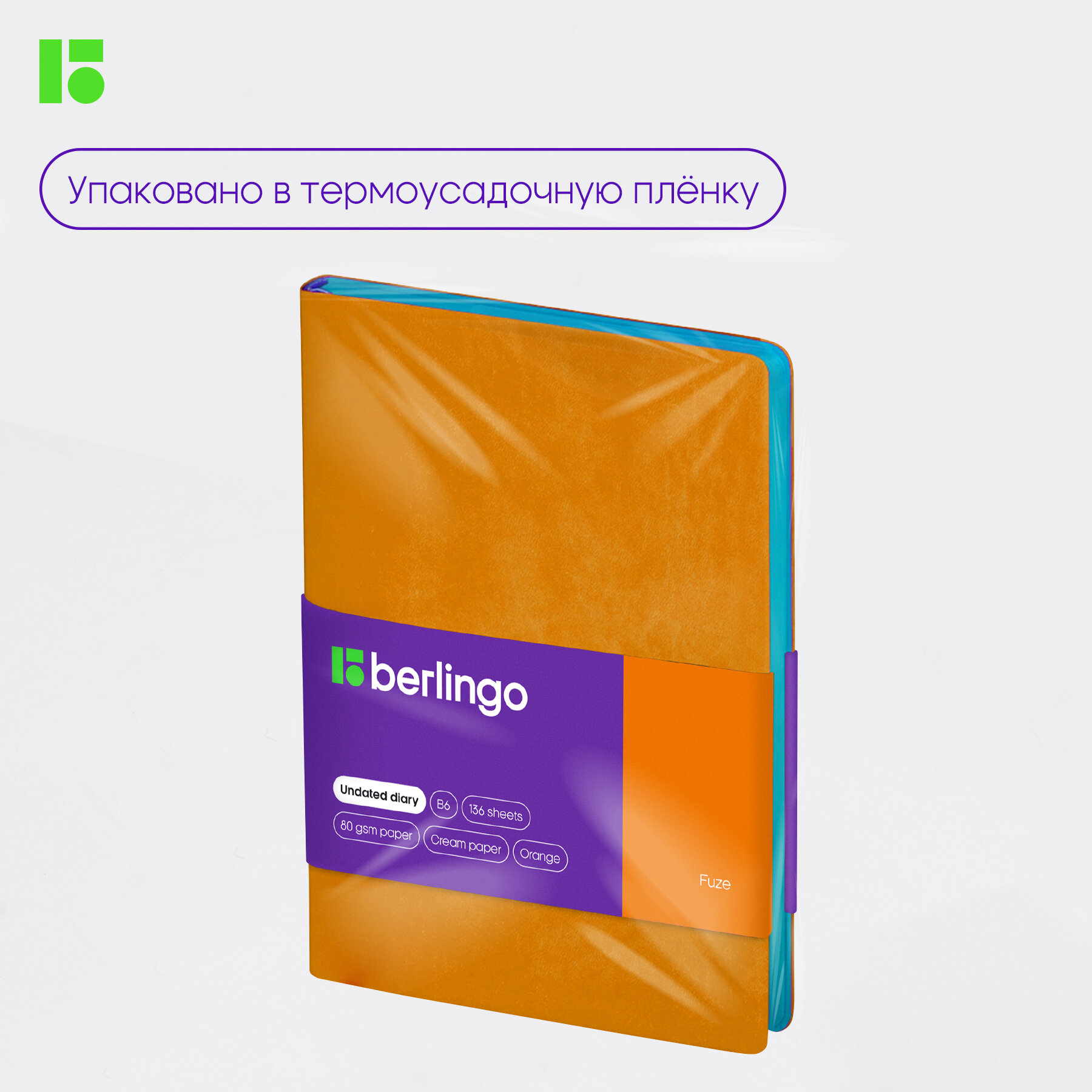 Ежедневник Berlingo Fuze недатированный, искусственная кожа, B6, 136 листов, бирюзовый, цвет бумаги тонированный