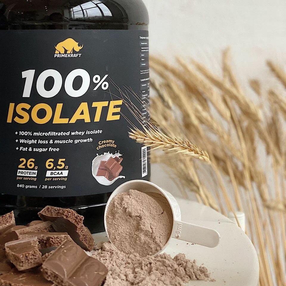 Протеин сывороточный 100% Изолят PRIMEKRAFT Isolate WHEY со вкусом Сливочный шоколад (Creamy chocolate), банка 840 г