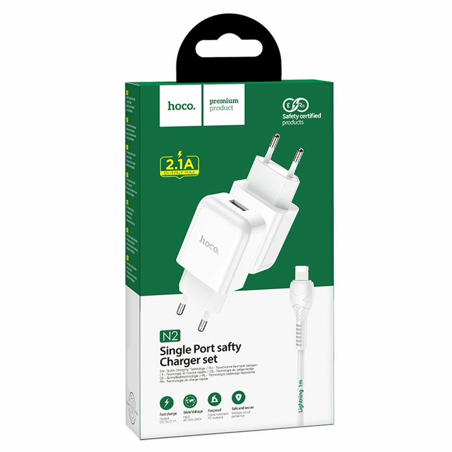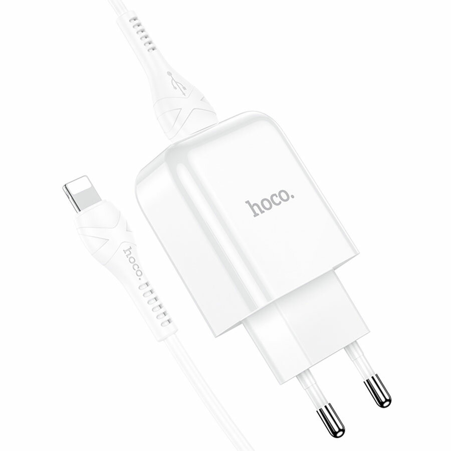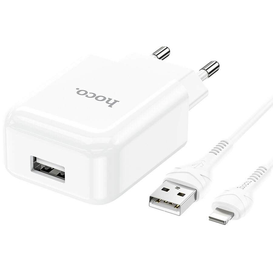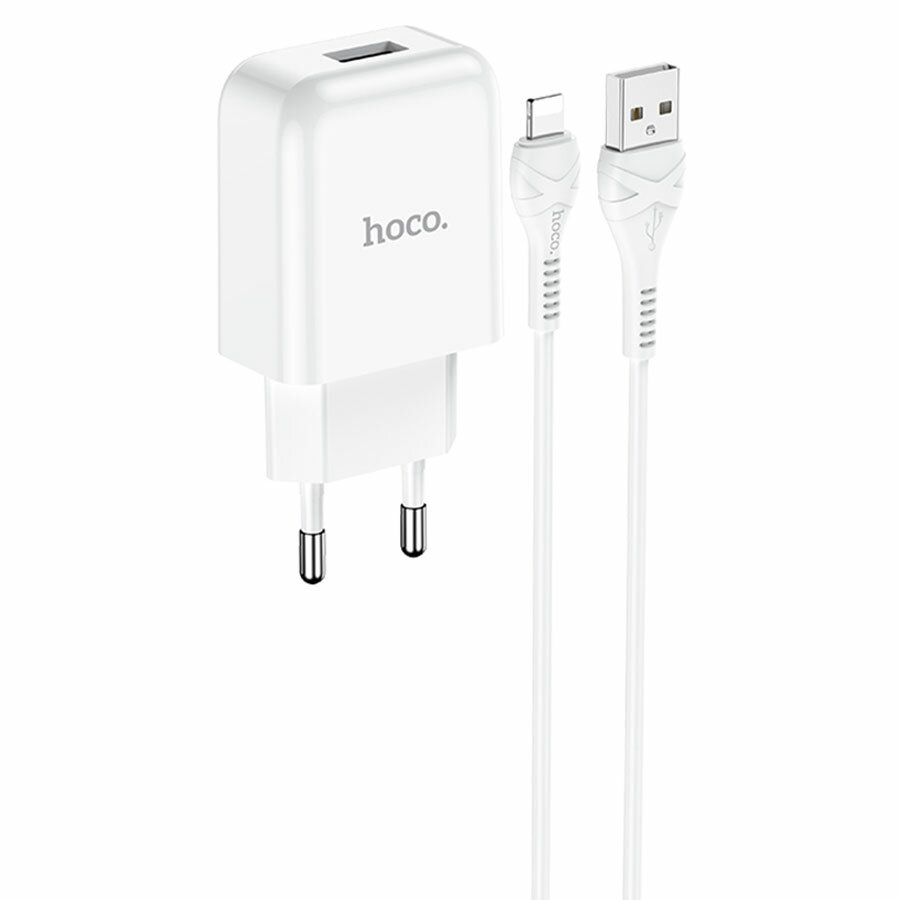 Купить Сетевое зарядное устройство Hoco N2, 1хUSB, 2 А, кабель Lightning, 1 м, белое