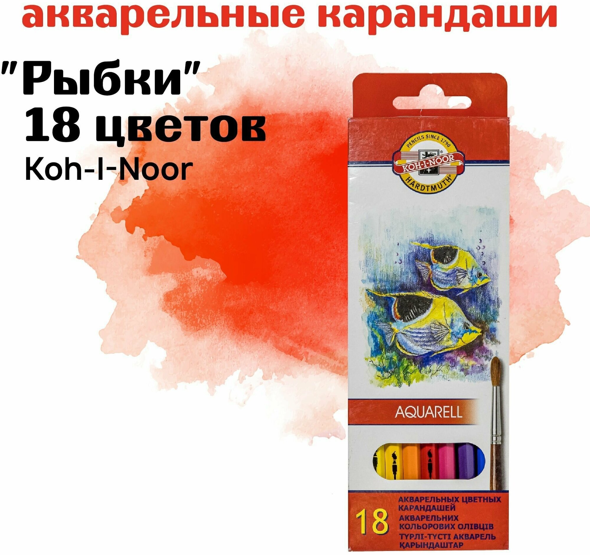 Карандаши акварельные KOH-I-NOOR "Рыбы", 18 цветов, заточенные, картон, европодвес (3717018004KSRU)