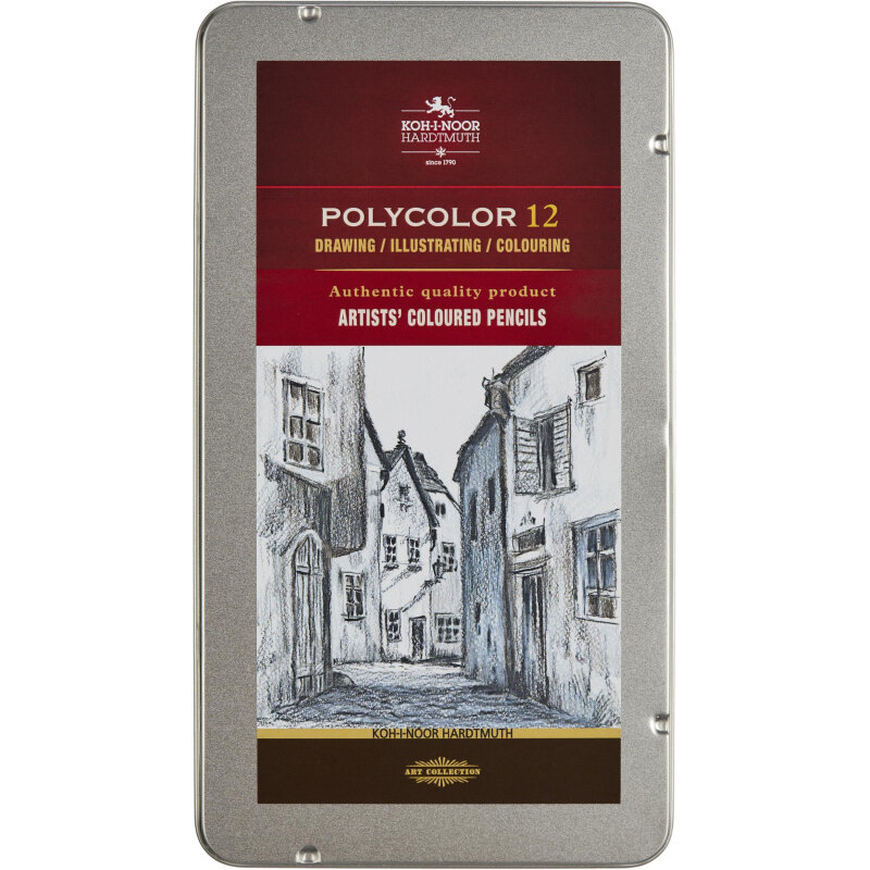 Купить Карандаши цветные KOH-I-NOOR Polycolor Grey Line, 12 цветов, металлический пенал (3822012013BL)