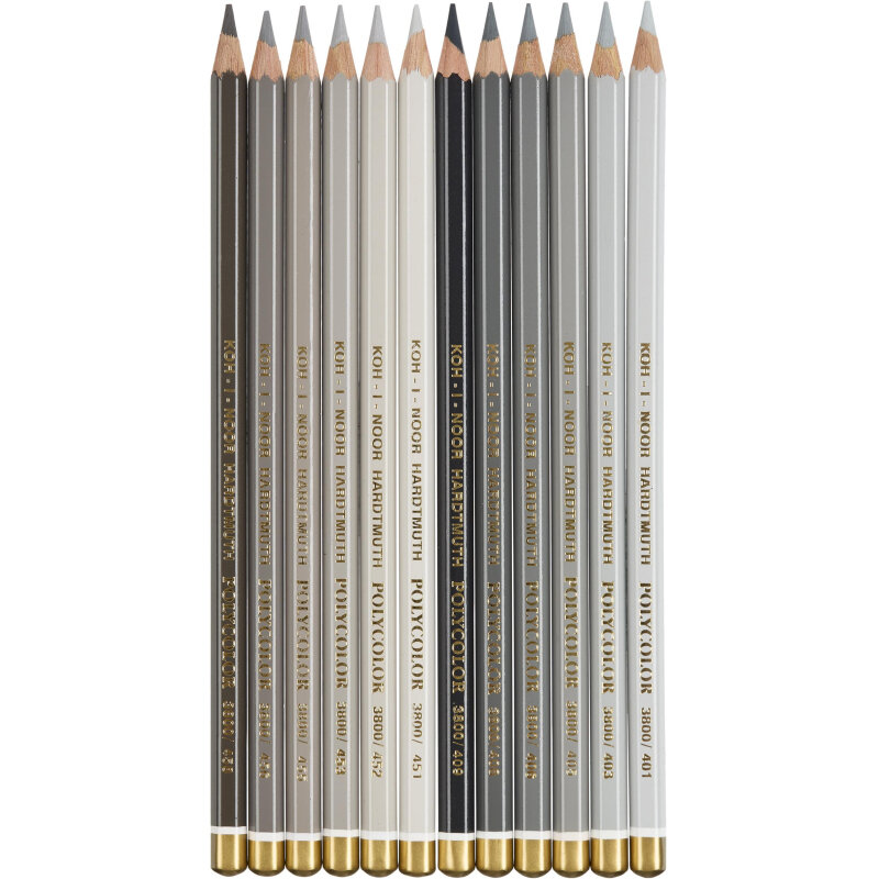 Koh-I-Noor Карандаши 12 цв Koh-i-Noor POLYCOLOR 3822, GRAY LINE, мет/пенал в блистере