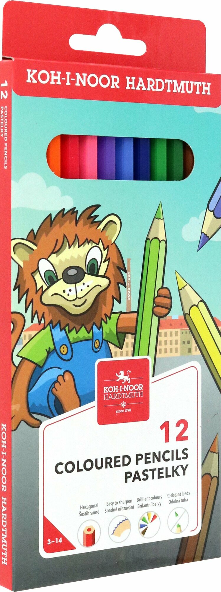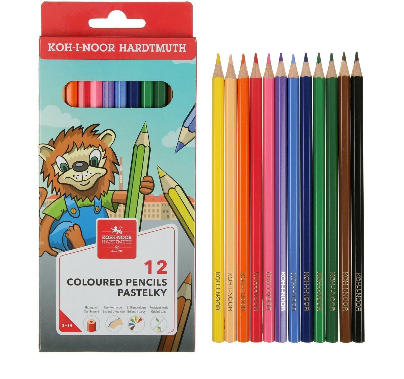 Карандаши цветные KOH-I-NOOR "Lion", 12 цветов, заточенные, картон, европодвес (3552012034KS)