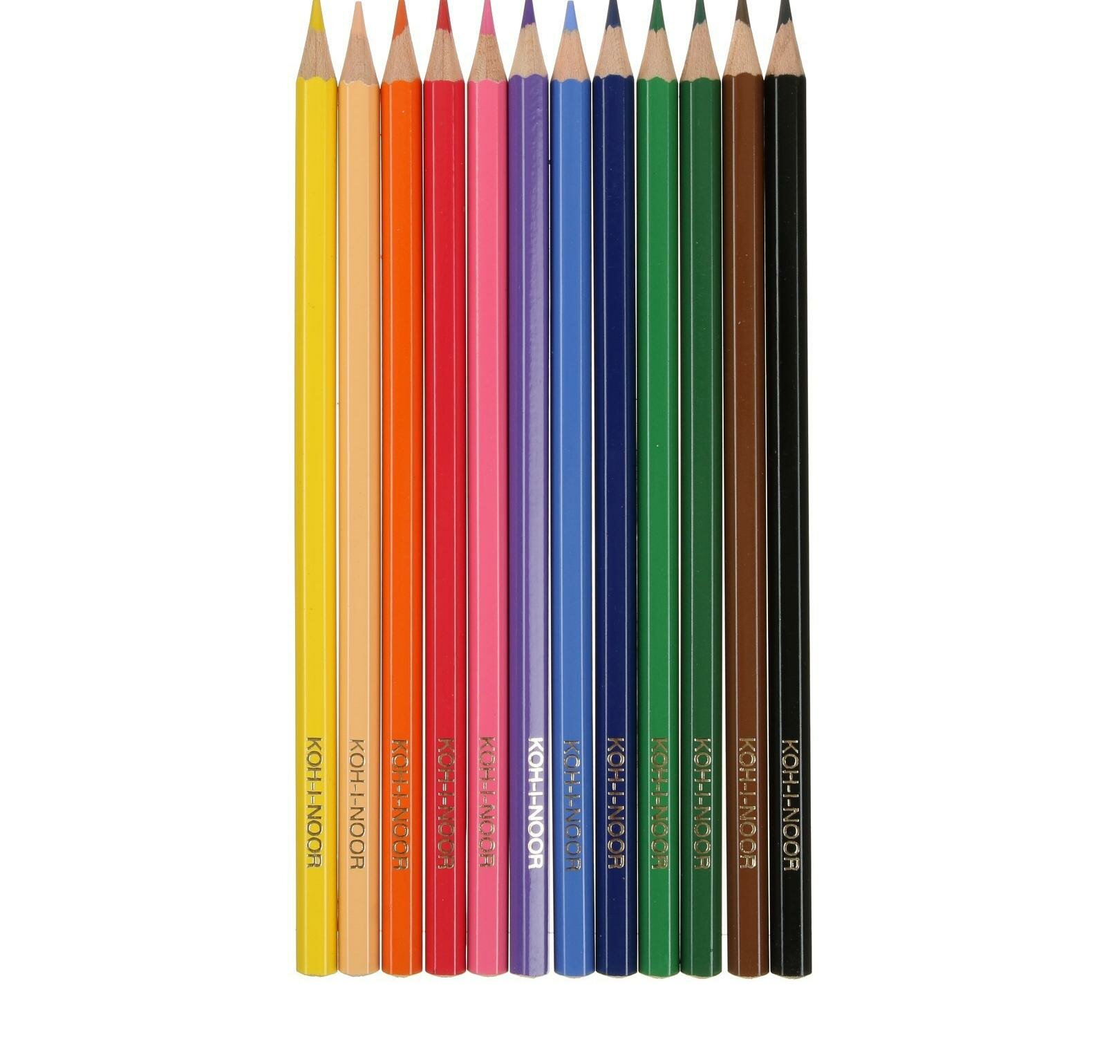 Карандаши цветные Koh-i-Noor, шестигранные, толщина грифеля 2,8 мм, набор 12 цветов