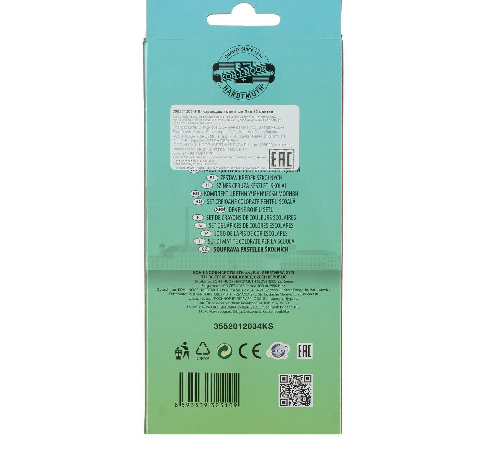 Купить Карандаши цветные KOH-I-NOOR Лео 12цв/наб картон.упак. 3552012034KS