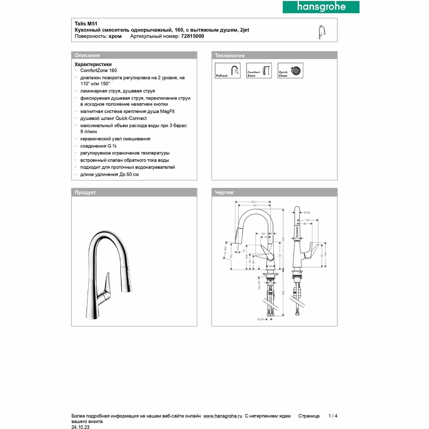 HG Talis M51 Кухонный смеситель однорычажный, 160, с вытяжным душем, 2jet интересное: