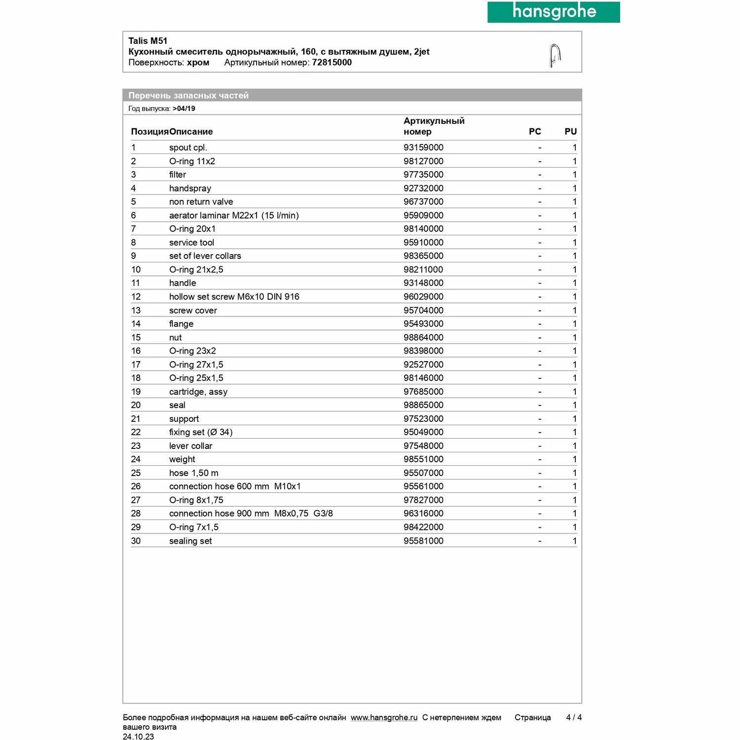 | Производитель | hansgrohe |