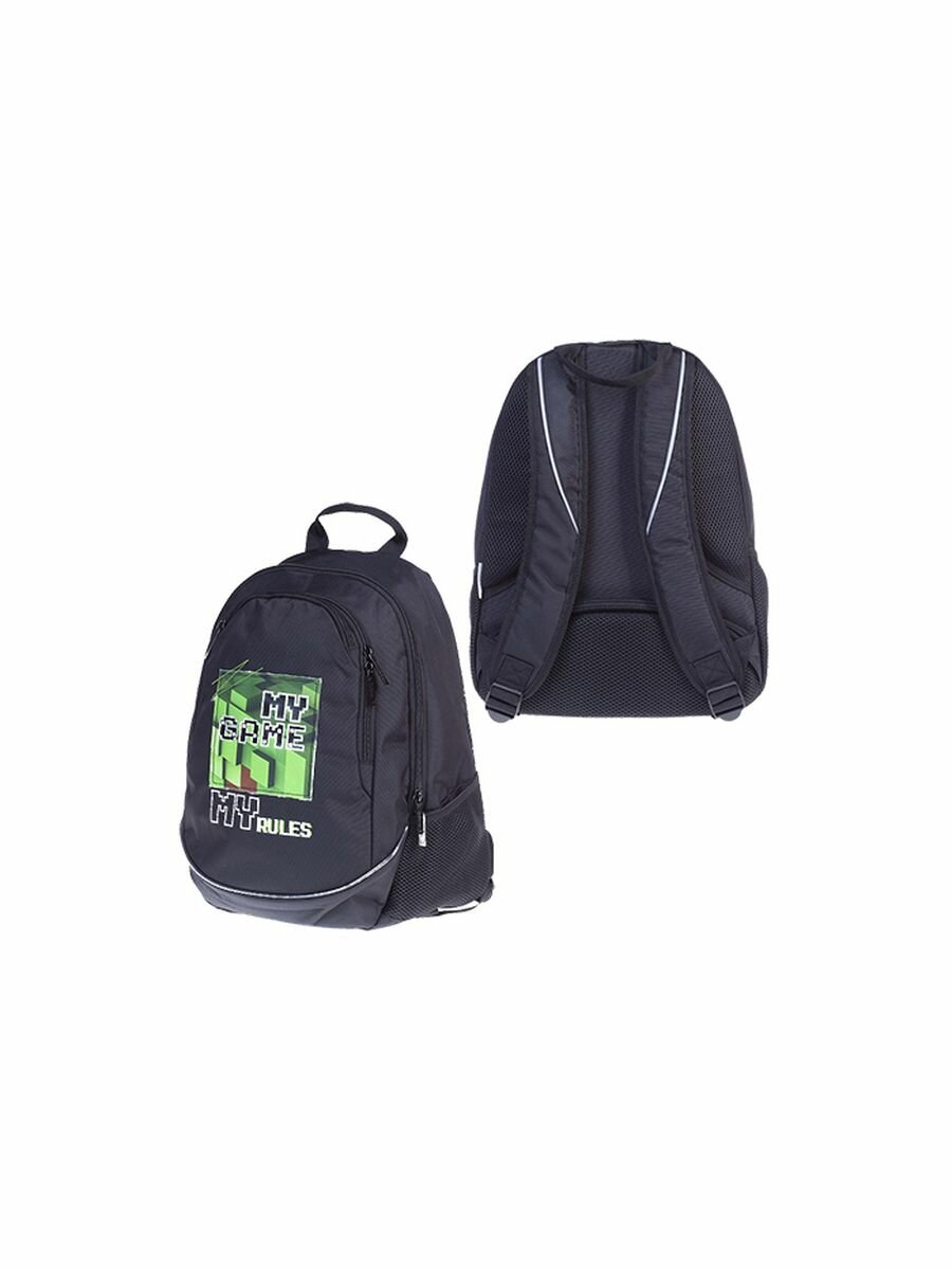Рюкзак школьный 42 х 30 х 20 см, эргономичная спинка, Hatber Sreet, Pixels, чёрный/зелёный NRk_78121