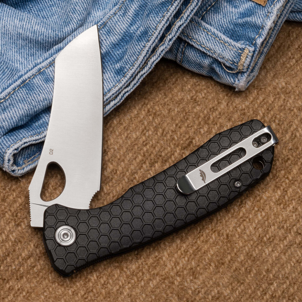 Нож складной Honey Badger Wharnclever D2 L (HB1104) с чёрной рукоятью