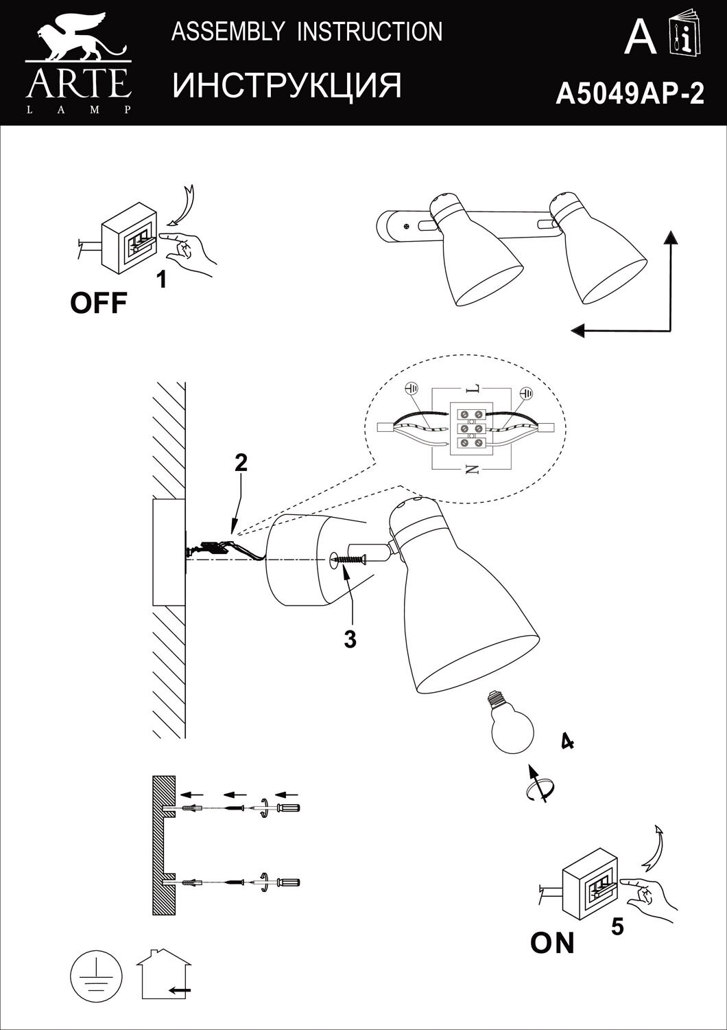 | Комплектация | Споты и трек-системы Arte Lamp A5049AP-2WH |