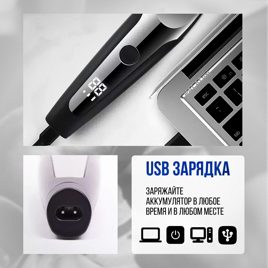 СохранитьПрофессиональная машинка для стрижки волос, триммер, бритва, светодиодный дисплей, USB разъем, V-059, чёрно серый металлик, подарок для мужа и мужчины интересное: