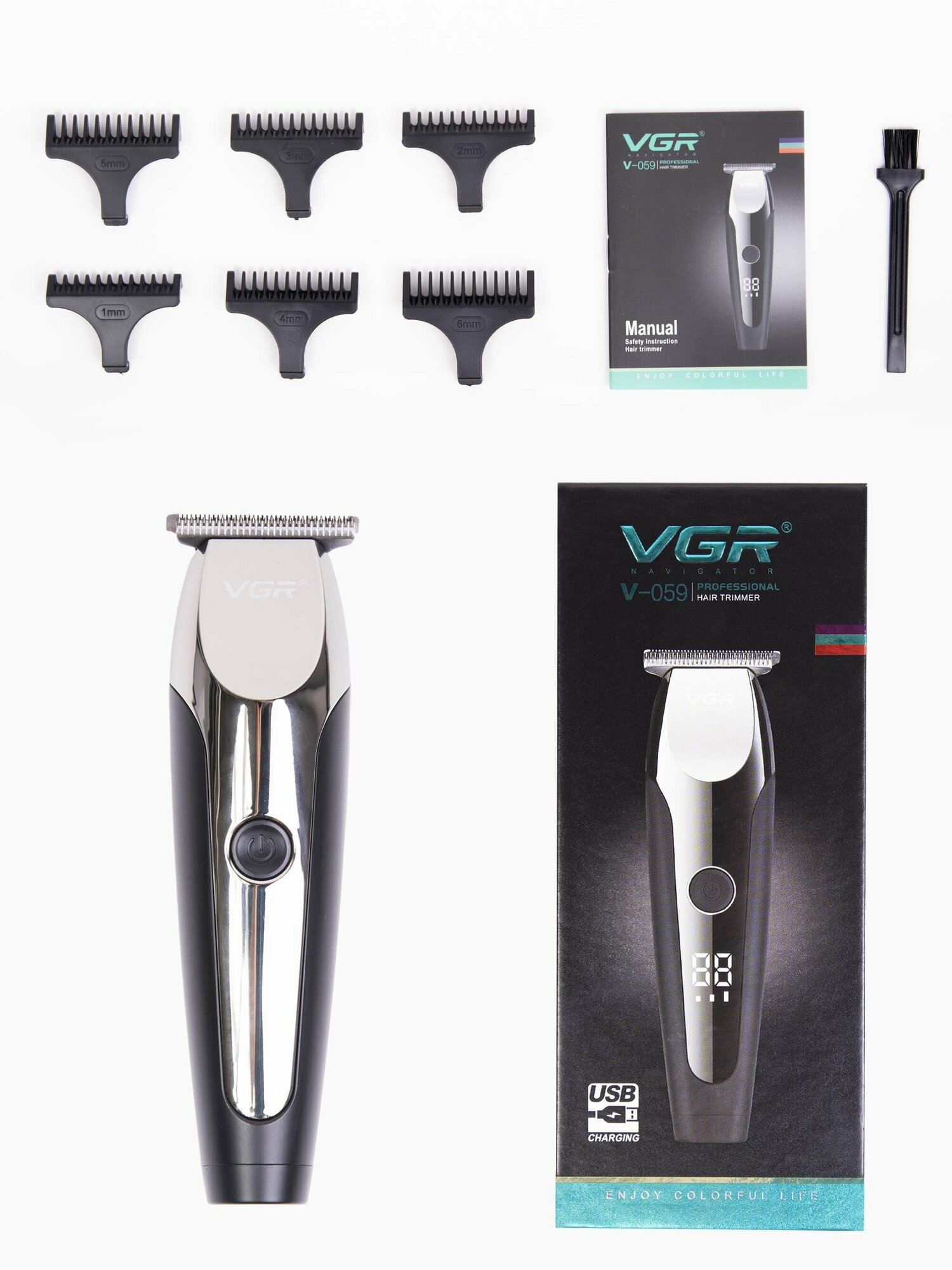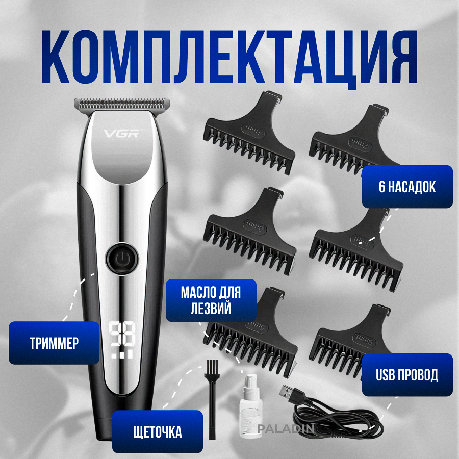 Триммер для бороды и усов беспроводной с экраном полный комплект VGR V-073
