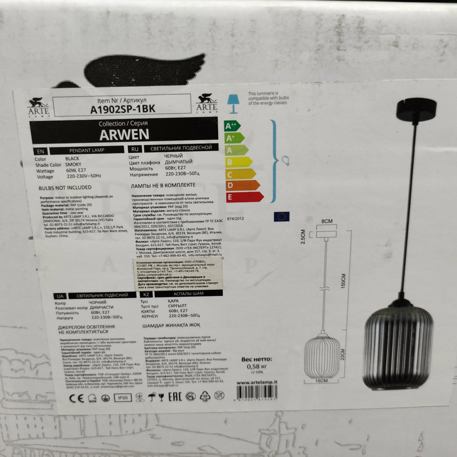 Ниже Вы можете прочитать отзывы на Светильник подвесной Arte Lamp Arwen A1902SP-1BK, E27, кол-во ламп:1шт., Черный, ознакомится с подробными характеристиками, посмотреть интересные обзоры и фотографии на Светильник подвесной Arte Lamp Arwen A1902SP-1BK, E27, кол-во ламп:1шт., Черный.
