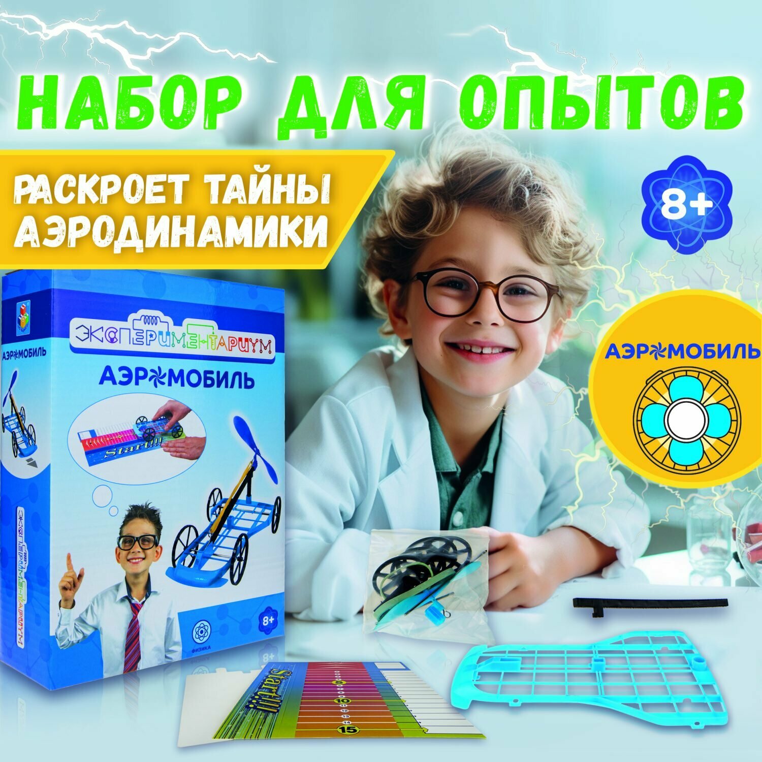 Набор для опытов 1TOY Т17575 Экспериментариум. Строение Аэромобиль