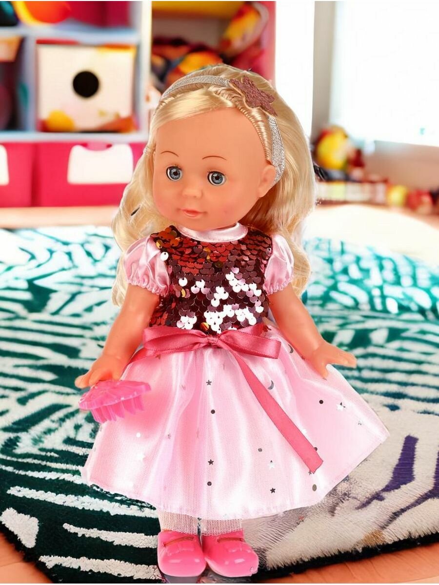 Кукла озвуч. "Абвгдйка" песня Анастасия 30см в платье, 100 фраз, закр. глаза, 3 аксес.