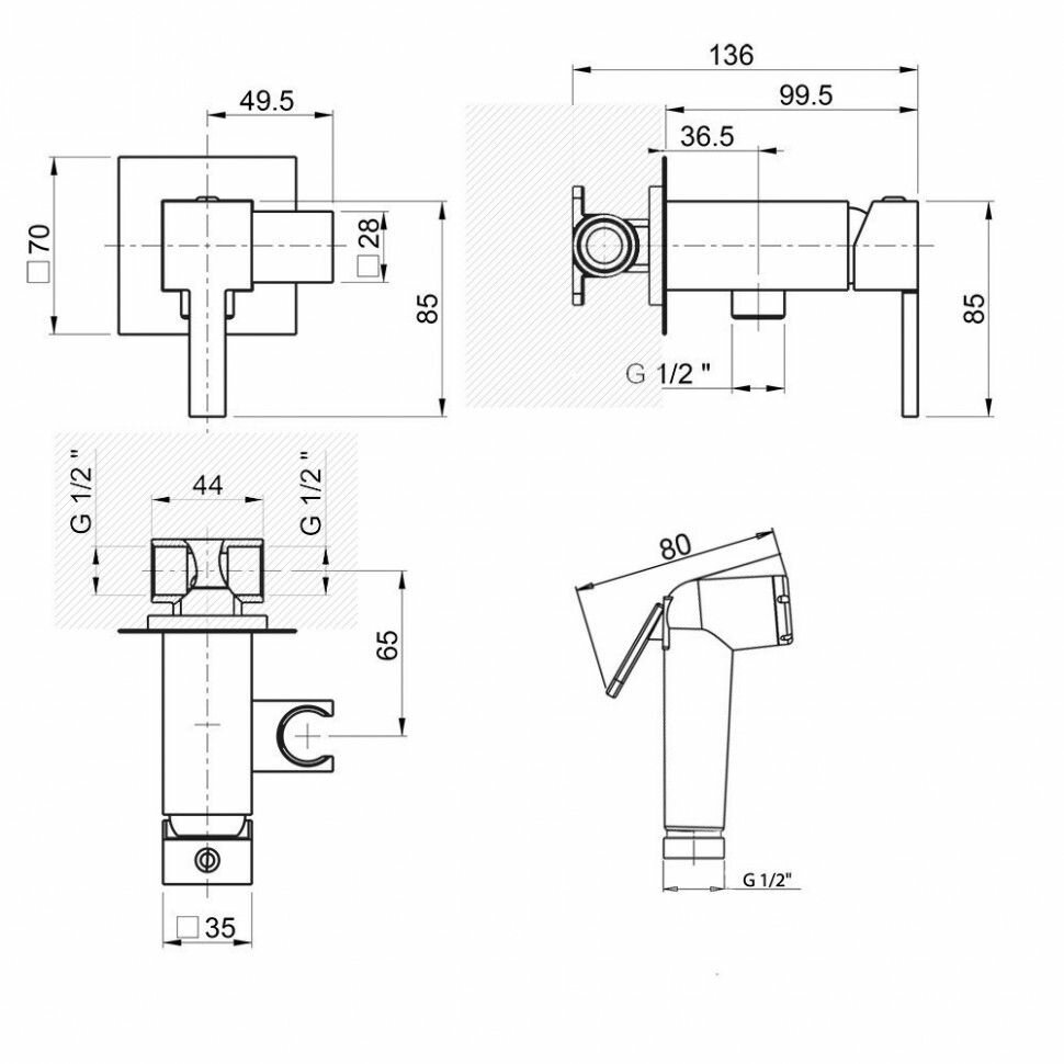 | Тип устройства | смеситель с гигиеническим душем |