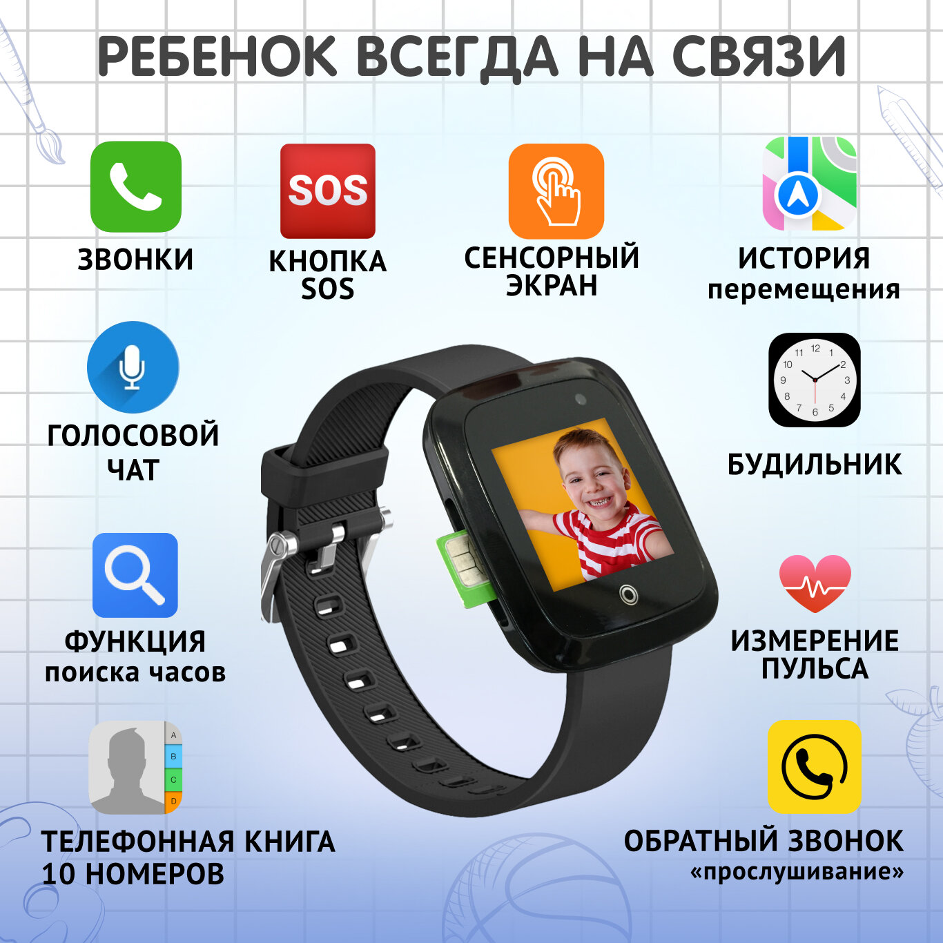 | Дополнительные функции | динамик / микрофон / шагомер |