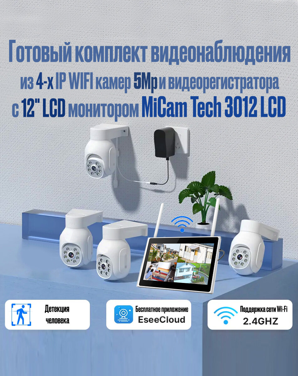 Купить Готовый комплект видеонаблюдения на 4 IP WIFI PTZ камеры 5Mp , система видеонаблюдения с 12'' монитором и 1Тб диском MiCam 3048 LCD