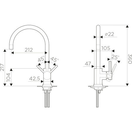 | Длина излива | 212 мм |