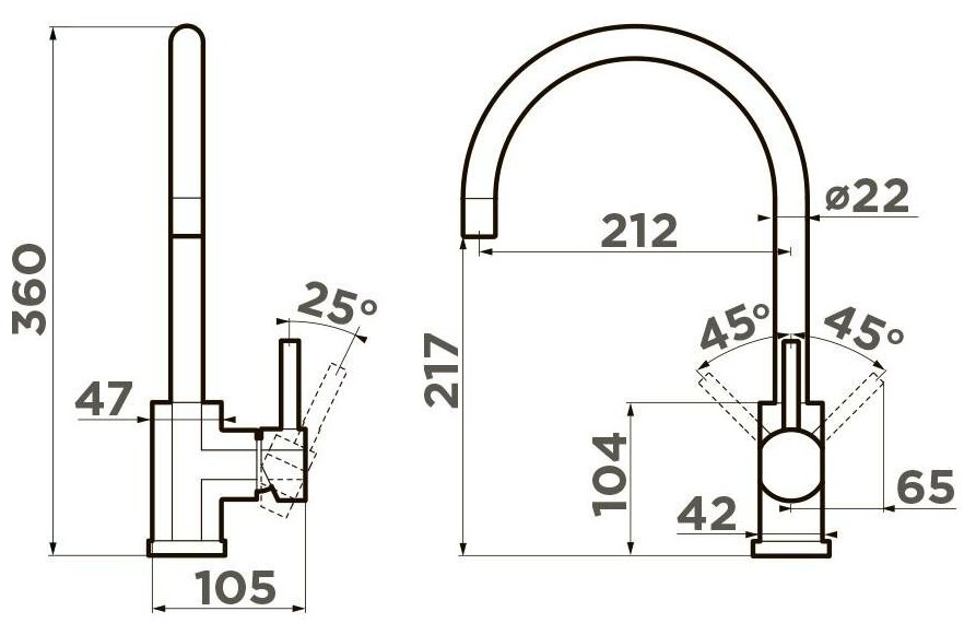 | Высота излива | 217 мм |