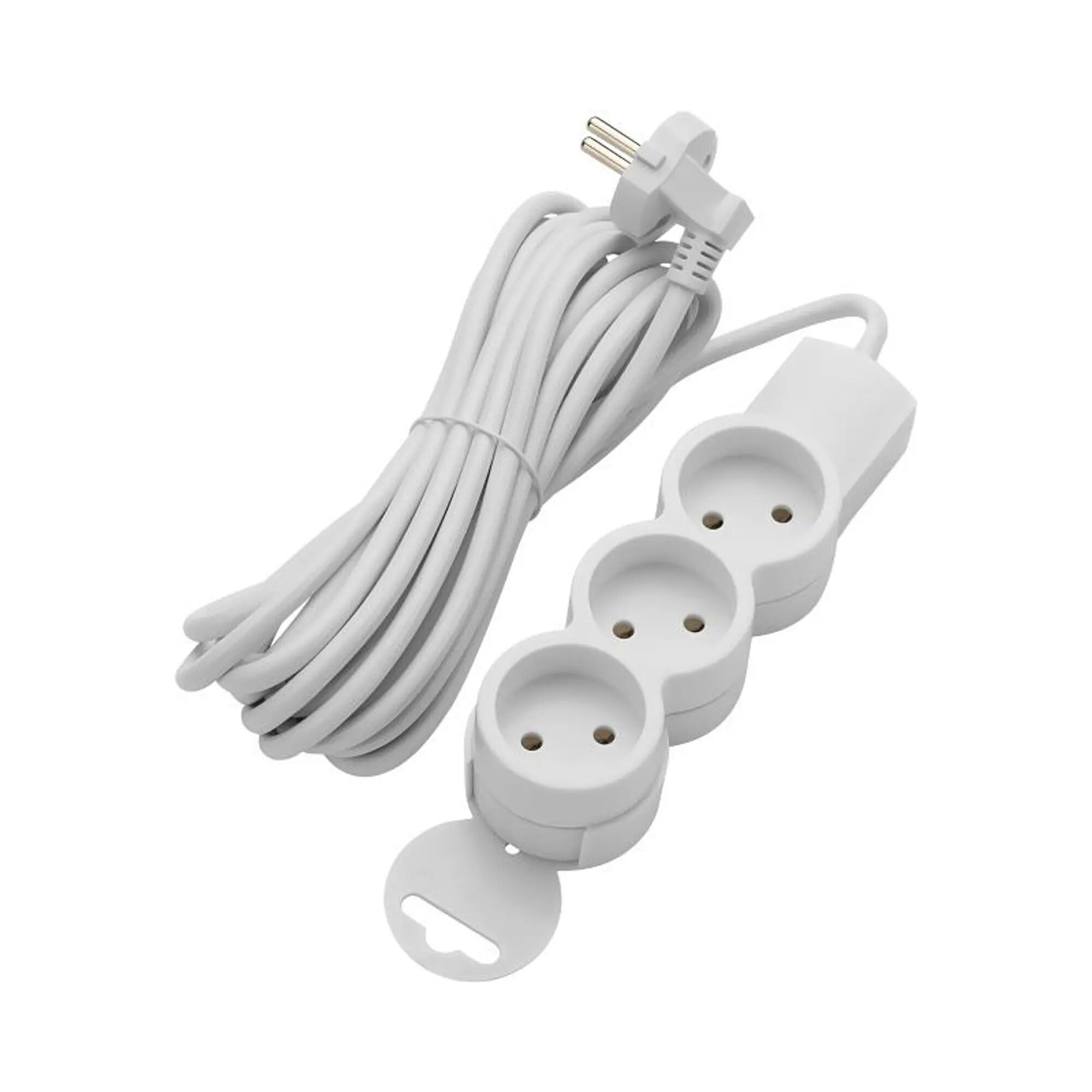 32003 8 Удлинитель бытовой, 3 гнезда, 5м, без заземления, с держателем, 2200Вт, 10А, белый, 32003 8, duwi, цена за 1 шт.