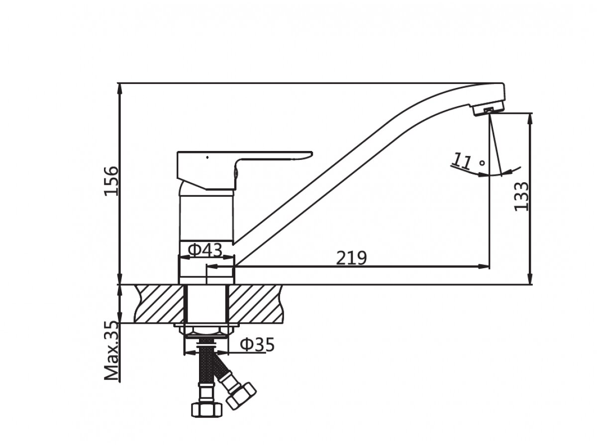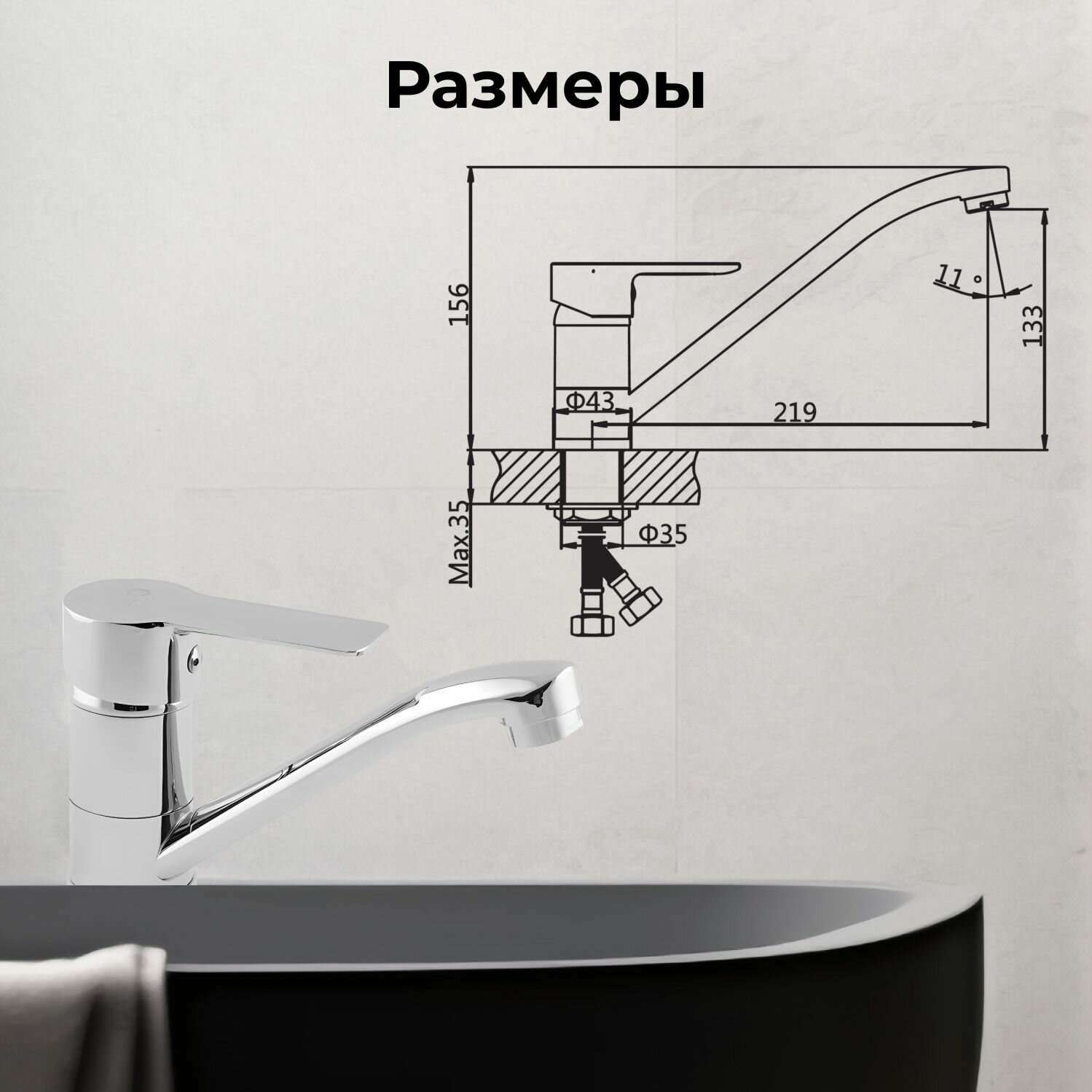 | Длина излива | 219 мм |