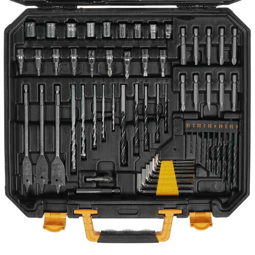 | Подробная комплектация | шуруповерт, сверло 3 шт, магнитный держатель для бит 60 мм, адаптер, нож строительный, зенкер, биты 50 мм 10 шт, набор крепежа 79 шт, биты со вставкой 9 шт, отверточная рукоятка, торцевая головка 9 шт, удлинитель, биты 25 мм 50 шт, сверло 5 шт, сверло 10 шт, аккумулятор 2 шт, документация, зарядное устройство, кейс |