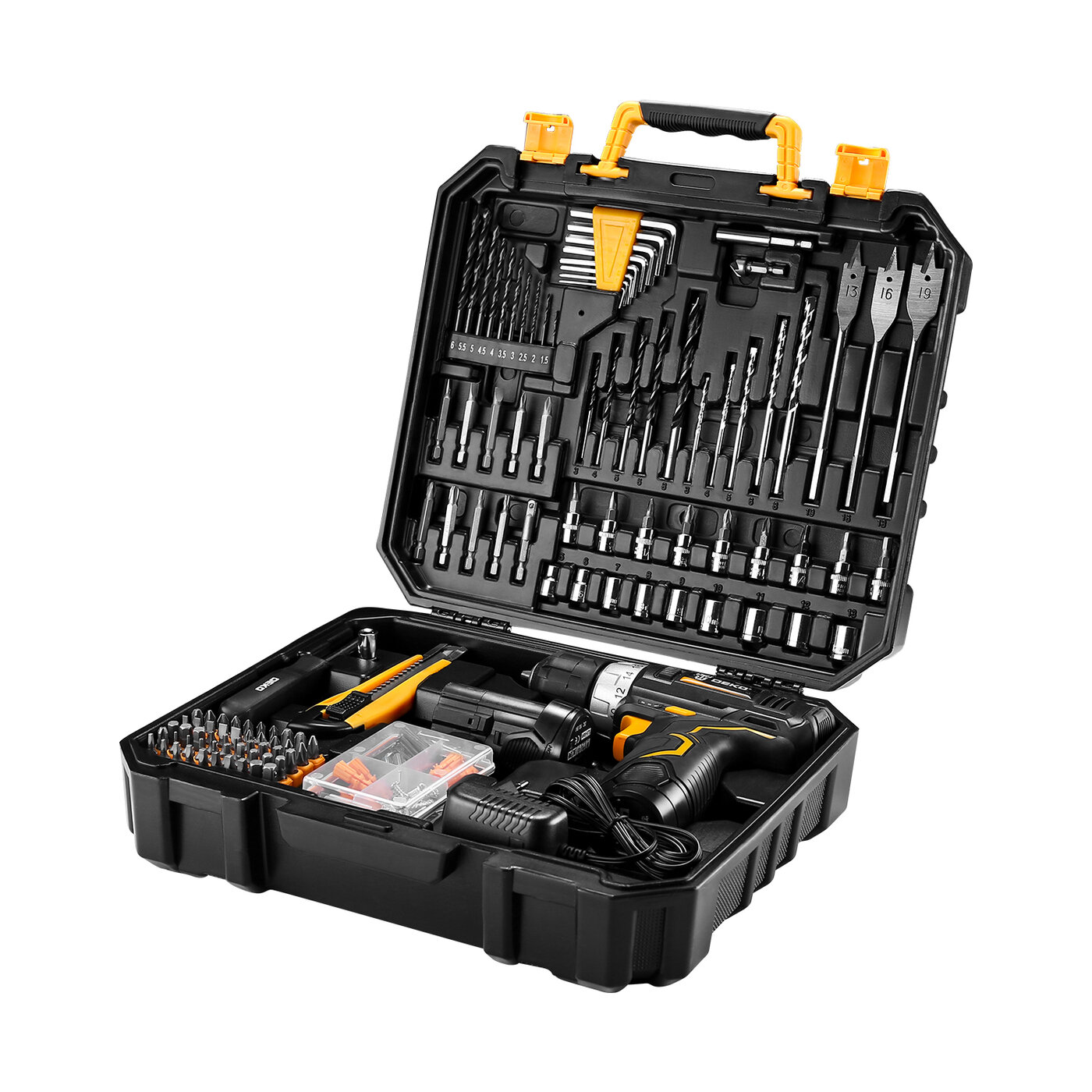 Дрель-шуруповерт аккумуляторная Deko GCD12DU3 в кейсе + набор 193 инструмента для дома, 12В, 2х1.5Ач (063-4138)