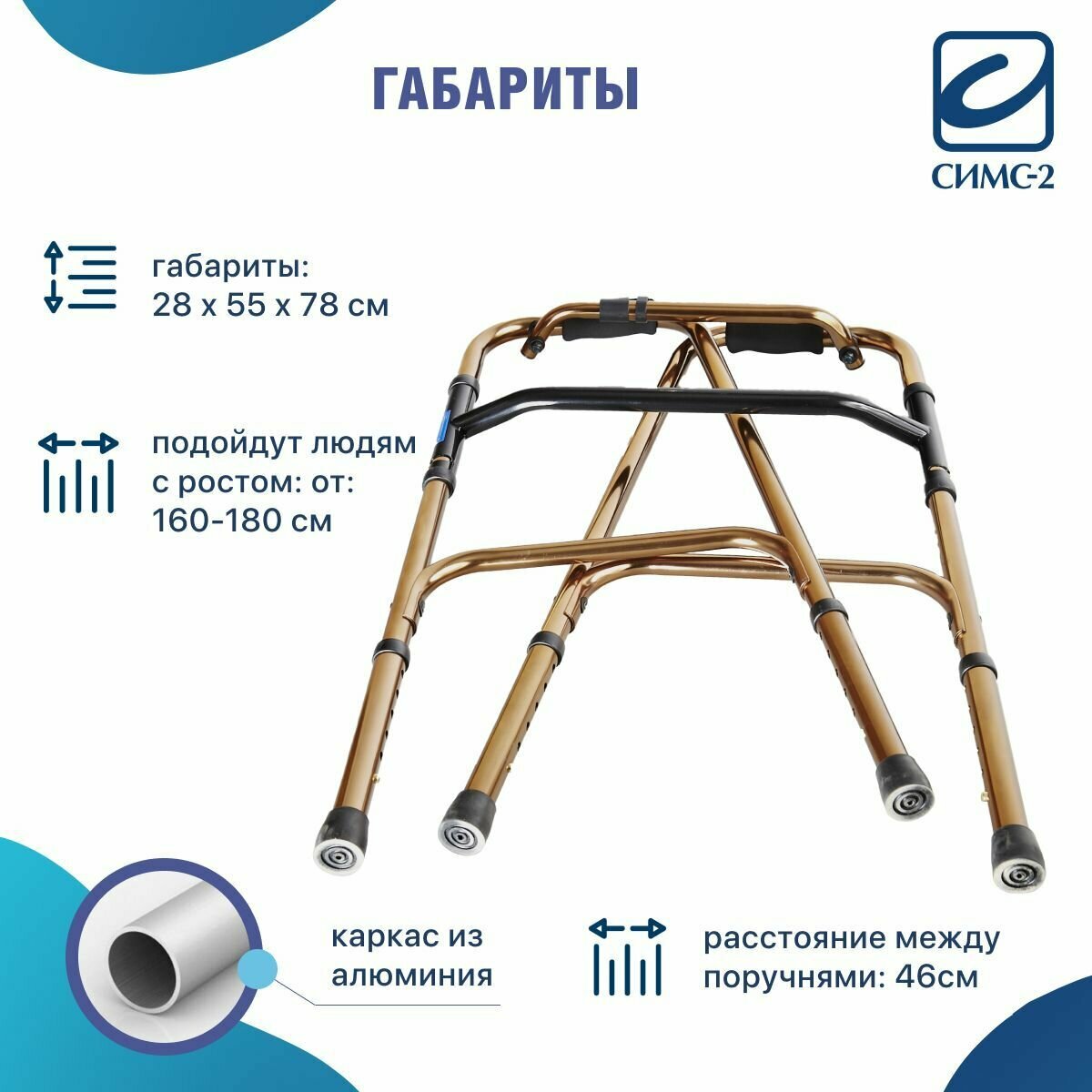 Опоры-ходунки W Navigator 75-95 см ходунки с шагом/без шага (бронза)/Ходунки для инвалидов, пожилых людей медицинские