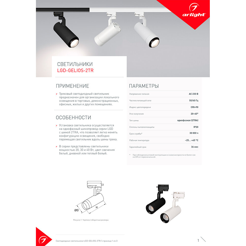 Трековый светильник Arlight LGD-Gelios-2TR-R80-30W Day4000 031243