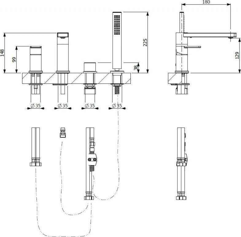 Смеситель на борт ванны Cezares GLAM-BVDM4 (Смеситель на борт ванны Cezares Cezares GLAM-BVDM4 хром)