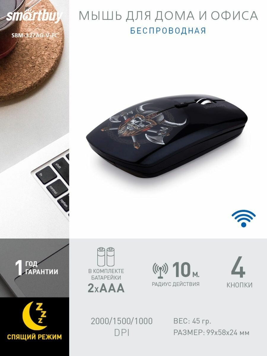 Беспроводная мышь SmartBuy SBM-327AG-V-FC Viking, черный интересное: