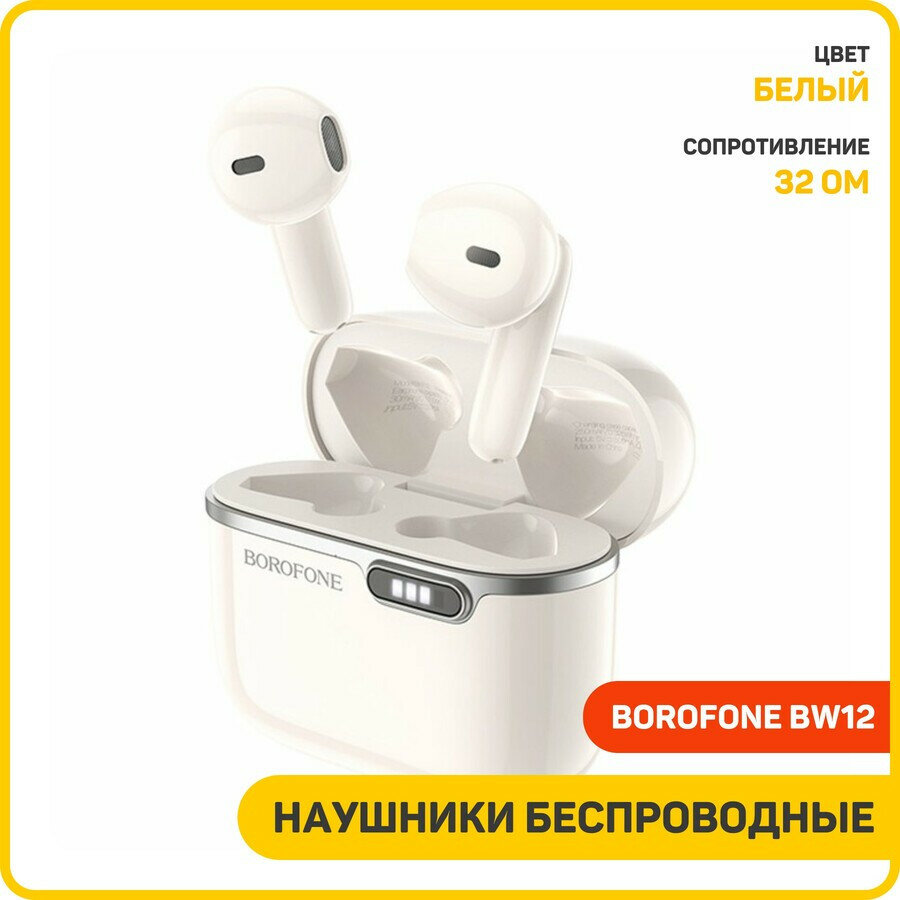 Наушники беспроводные Borofone BW12 (с боксом для зарядки) (Bluetooth) белый интересное: