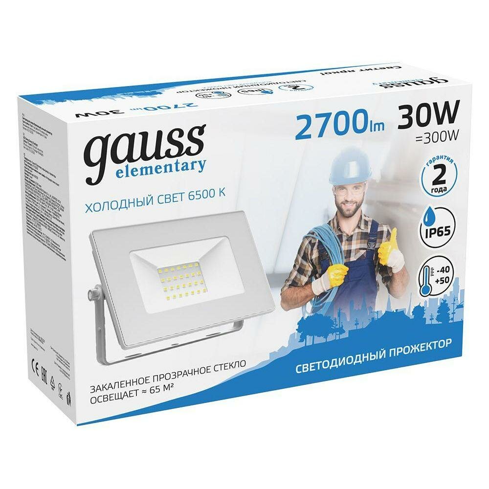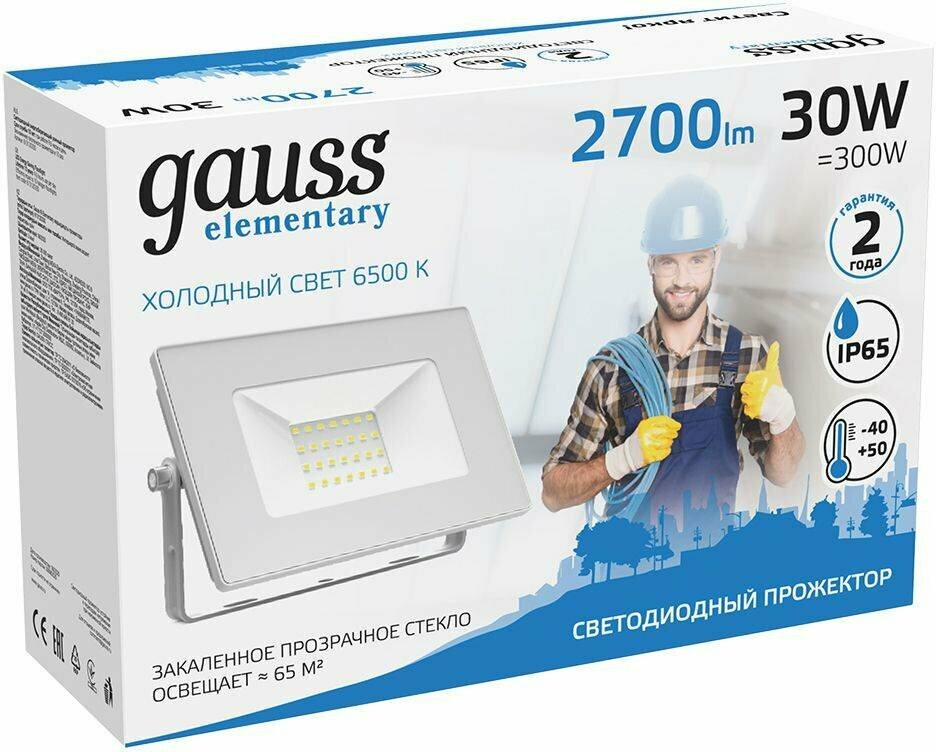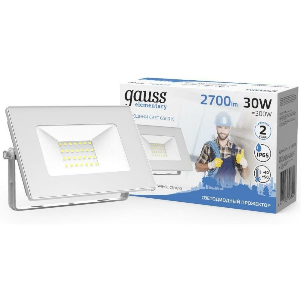Прожектор Gauss Elementary 30W 2700lm 6500K 200-240V IP65 белый LED 1/10 SQ613120330