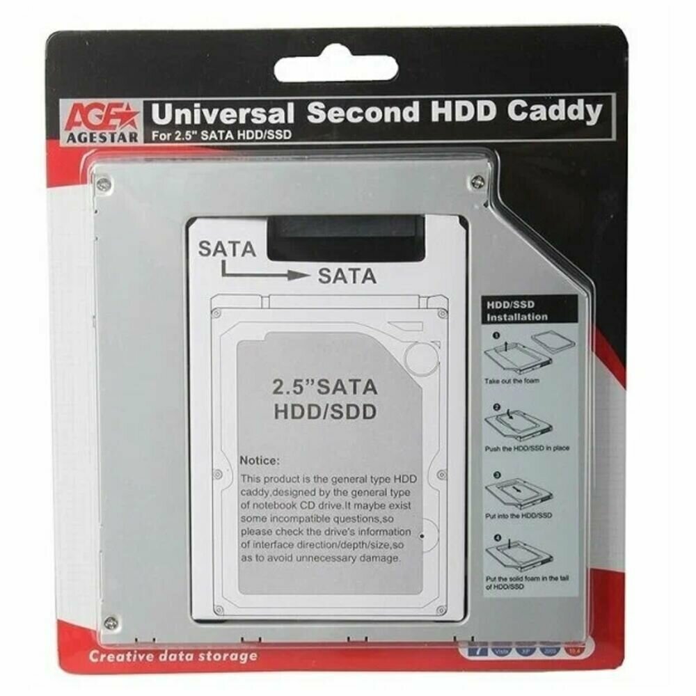Переходник для HDD (optibay) Agestar SSMR2S 2.5"металл серебристый