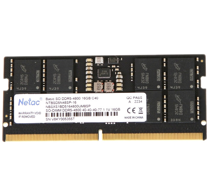 Купить Оперативная память Netac Basic SODIMM 16GB DDR5-4800 (NB5-38400) C40 40-40-40-77 1.1V Memory module