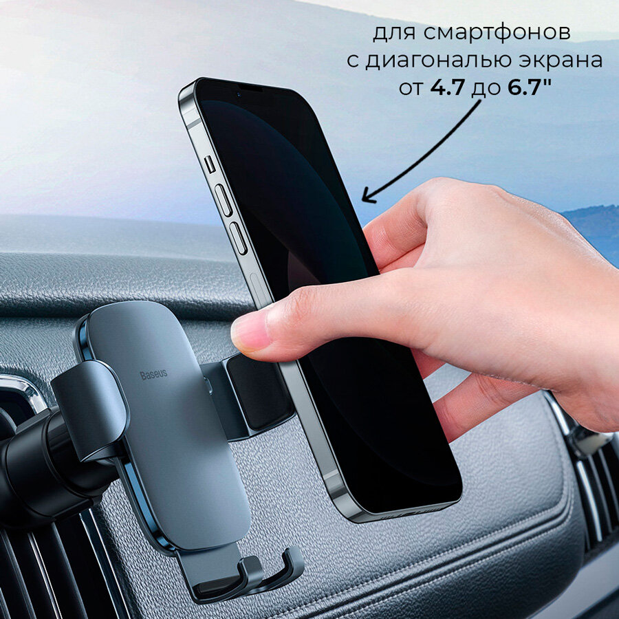 Держатель для телефона автомобильный гравитационный в машину на воздуховод Baseus Metal Age II для iPhone, Android смартфонов, цвет темно-серый
