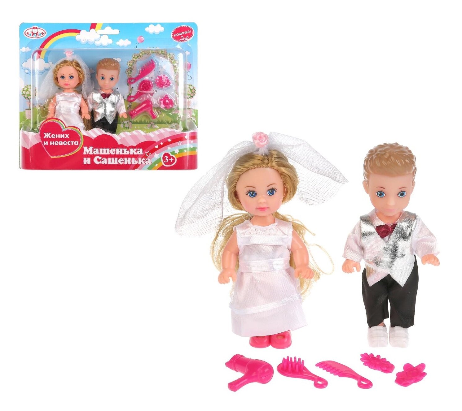 Купить 272679 Набор из 2-х кукол «Карапуз» 12см, Машенька и Сашенька, жених и невеста на блистере в кор.2*36наб