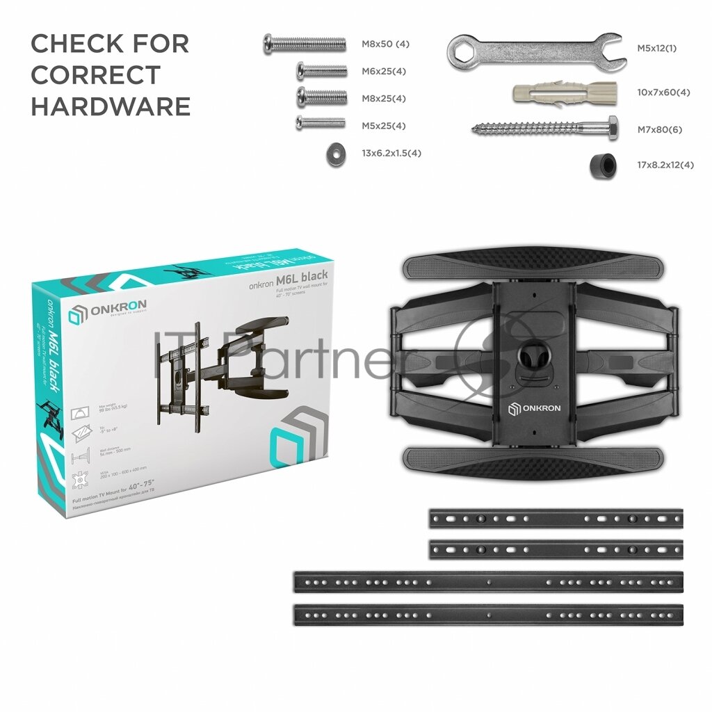 Кронштейн Onkron M6L, TV 40-75, настенный, наклонно-поворотный, чер , 1 шт.