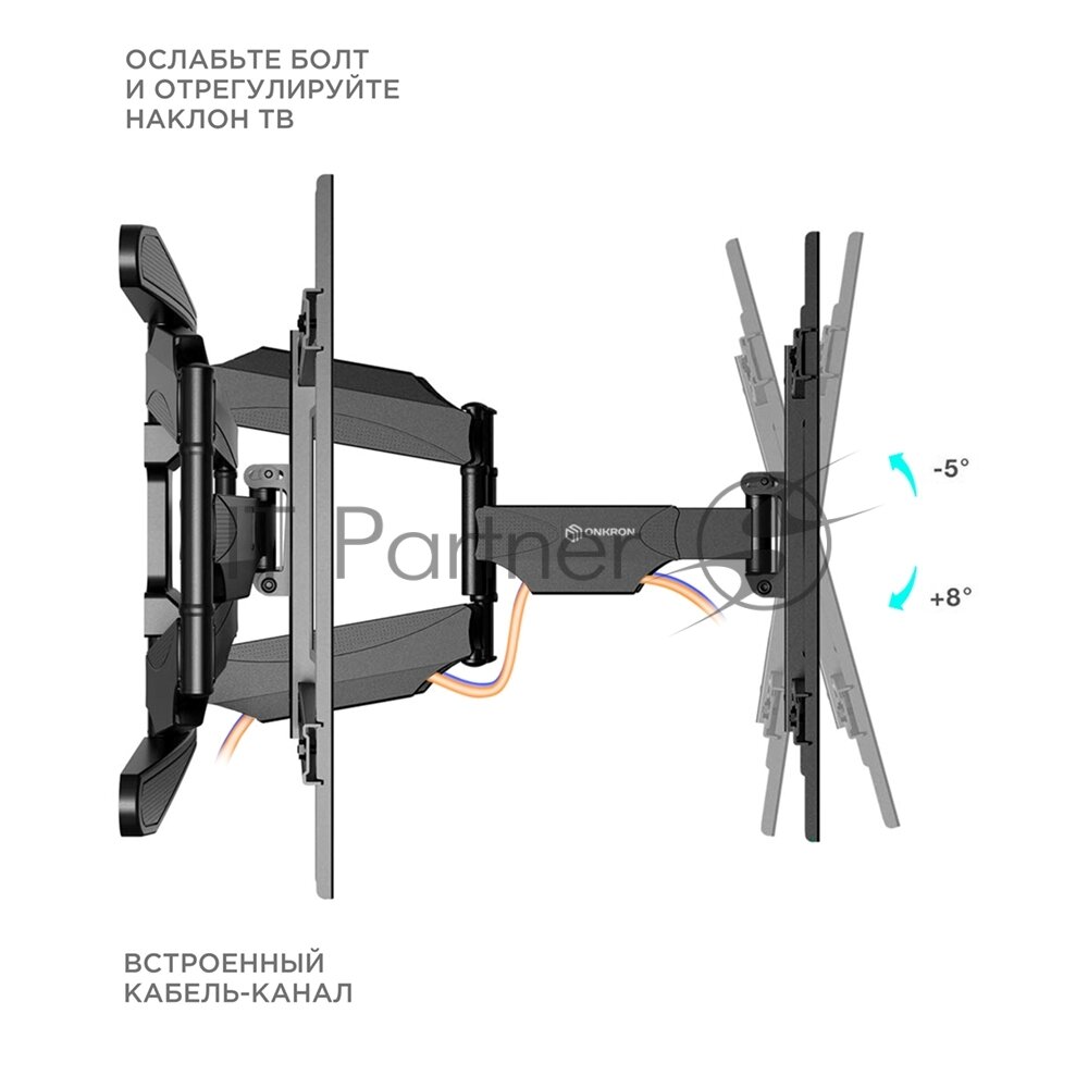 Кронштейн Onkron M6L, TV 40-75, настенный, наклонно-поворотный, чер