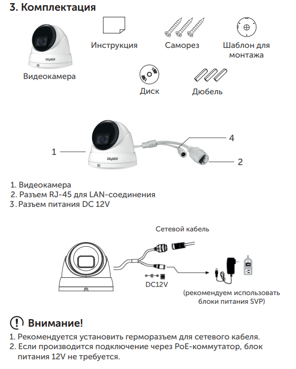 | Стандарт видеокамеры | IP |