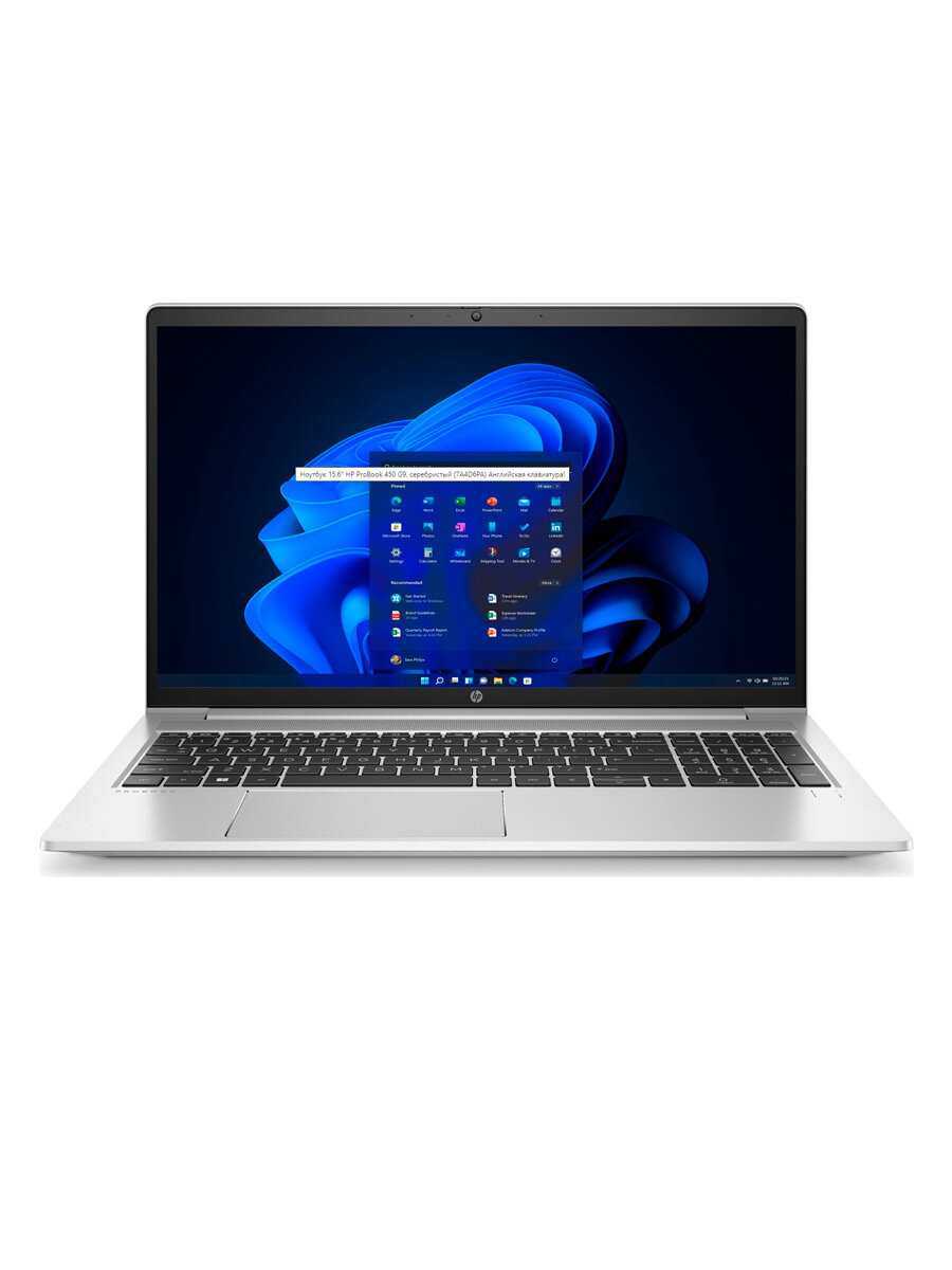 HP ProBook 450 G9 Silver (Русская / Английская раскладка клавиатуры) 7A4D6PA (Intel Core i7-1255U 1.7 GHz/8192Mb/512Gb SSD/nVidia GeForce MX570 2048Mb/Wi-Fi/Bluetooth/Cam/15.6/1920x1080/No OS)
