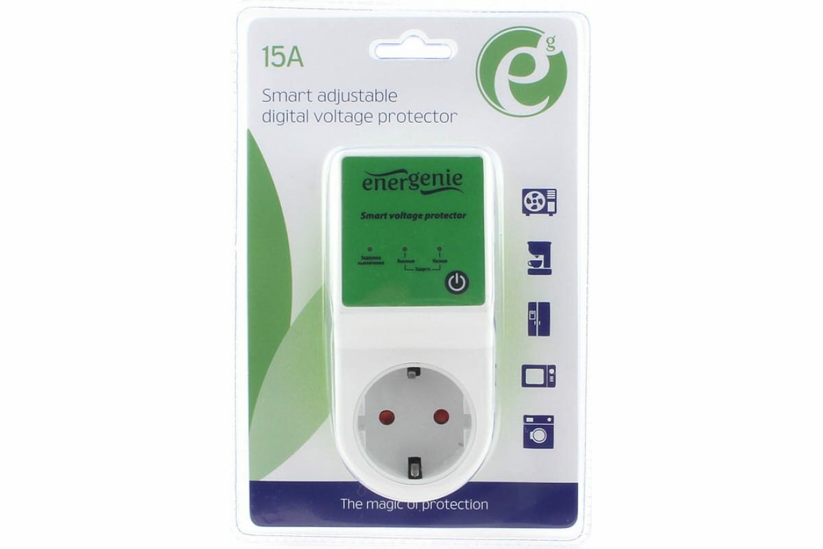 Реле напряжения Energenie EHB8-1 16A, для защиты от перепадов напряжения, белое