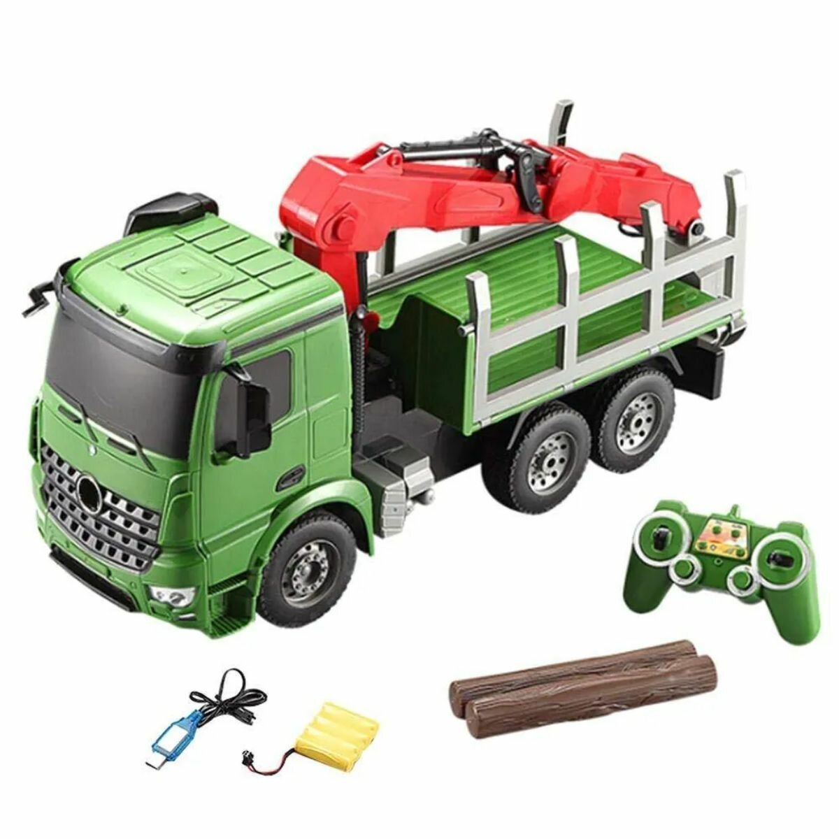 Купить Лесовоз на пульте управления многофункциональный Mercedes-Benz Arocs (E352-003), 1:20, 38 см, зеленый/красный/серый