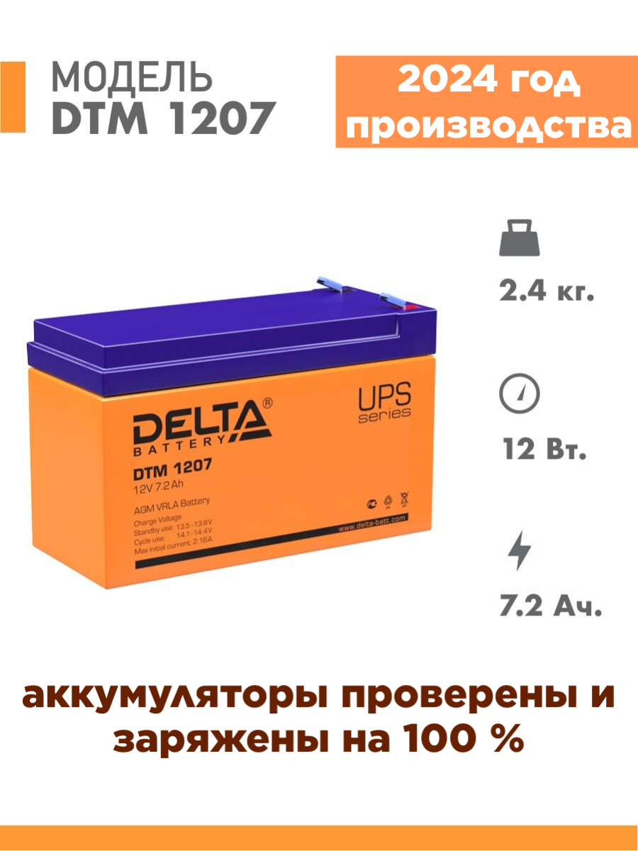 Аккумуляторная батарея Delta DTM 1207 12В 7,2Ач AGM для ИБП, UPS, аккумулятор для детского электромобиля
