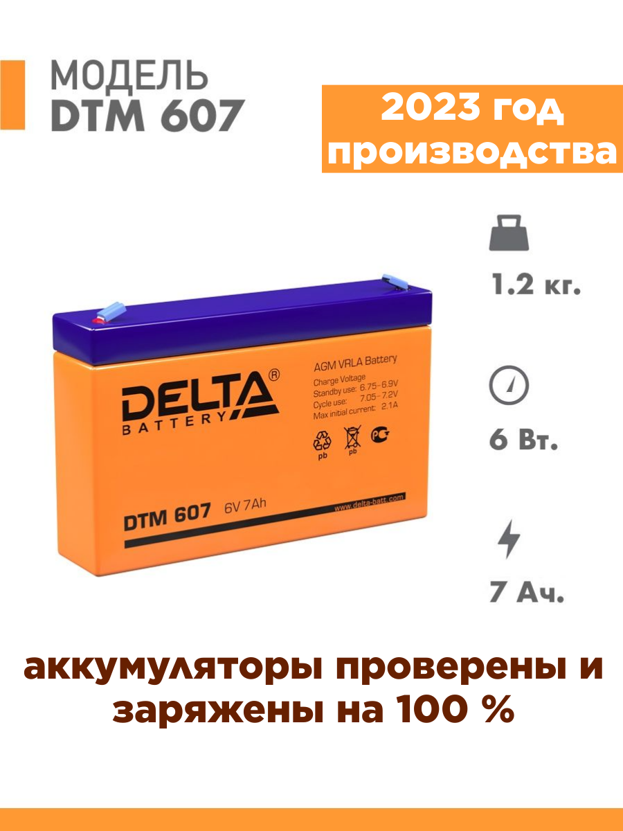 Аккумулятор Delta 6V 7A/h (DTM 607) для ИБП / эхолота / электромобиля