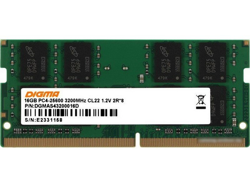 Оперативная память Digma DGMAS43200008S DDR4 - 8ГБ 3200МГц, для ноутбуков (SO-DIMM), Ret