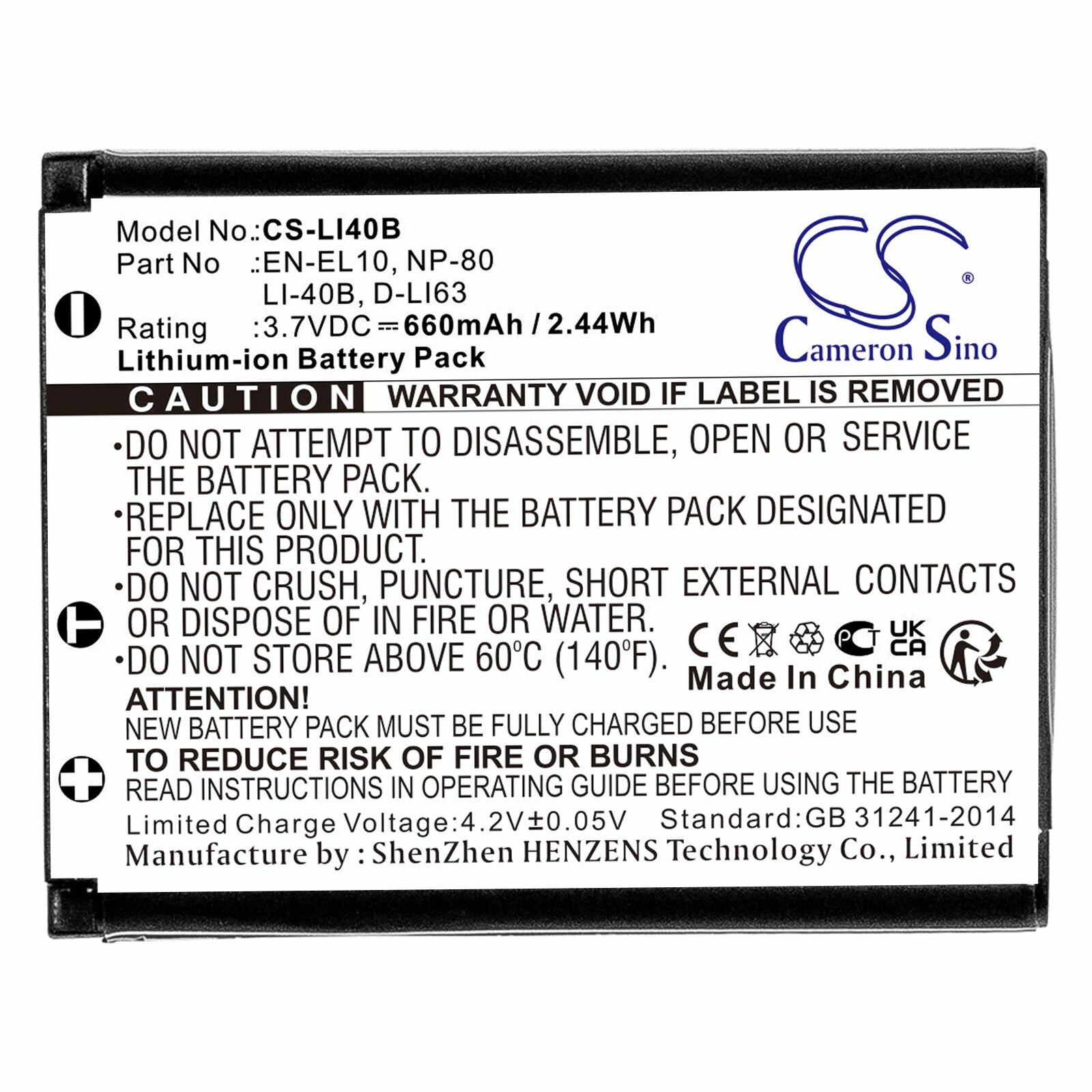Аккумулятор для Olympus LI-40B; Olympus LI-42B, Nikon EN-EL10, Casio, Pentax, Kodak и многих других производителей фотоаппаратов и видеокамер - CS-LI40B от компании Cameron Sino